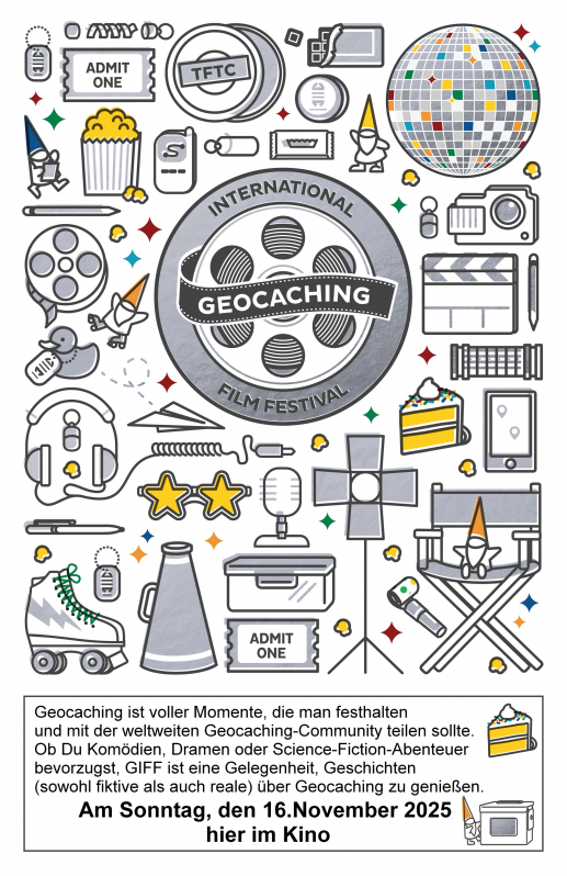 Als ob es nicht schon genug Gründe gäbe, sich auf das Jahr 2025 zu freuen, ist das Geocaching International Film Festival (GIFF) wieder zurück! Viele Laienfilmer und semiprofessionelle Regisseure haben witzige, spannende, unterhaltsame, überraschende und erklärende Geschichten über die mittlerweile sehr bekannte schönste nebenbeschäftigung der Welt gedreht. Die besten Filme wurden zusammengestellt und sie sind auch diesen November wieder für 2,5 Wochen weltweit an ausgesuchten Plätzen zu sehen. Kenner dieser Schatzsuche werden sich in manchen Storys wiederfinden und neugierige Newcomer werden sich wundern, welche Parallelwelt bisher vor ihnen verborgen blieb.